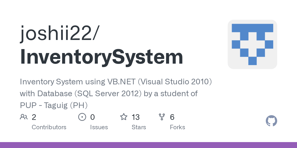 Visualbasic Inventory Sysem Github - Myinventory Codeplex Archive - I've made a fork with my rough idea for an inventory system and manager.. Cobbler is a linux installation server that allows for rapid setup of network installation environments. Today i'm going to show you one of the best application software sales and inventory system in php mysql. Download download github extension for visual studio. The technology has been crafted keeping in mind many purposes that can be solved in the days to come. It features the main requirements of ab inventory system.